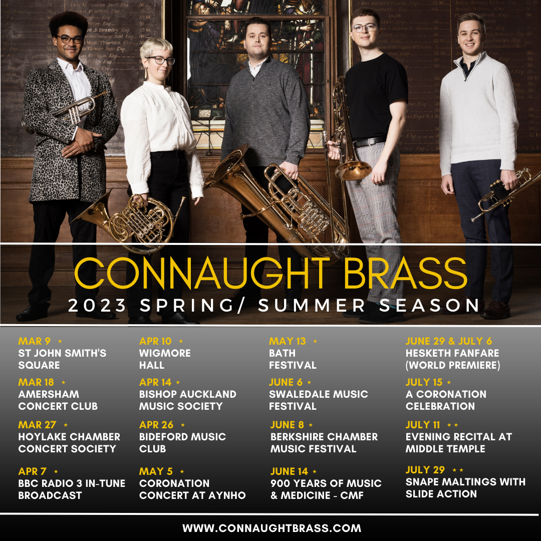 Other dates include two coronation celebration concerts at Aynho & Petersfield, a recital at Middle Temple in the City and a very exciting joint concert with the fantastic Slide Action trombone quartet at Snape Maltings.